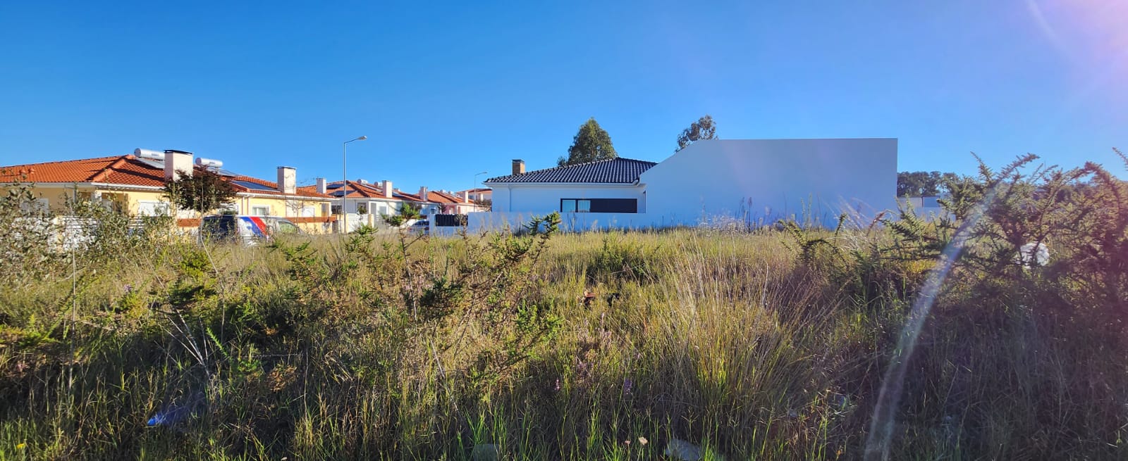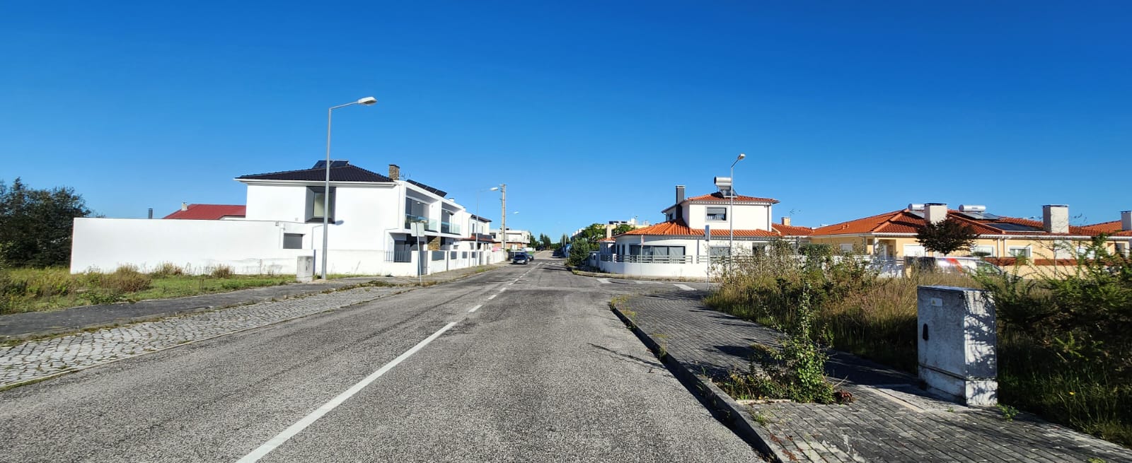 Este lote terreno, virado a poente, de declive plano, com uma frente de 20m, 345m2 de área bruta, 185m2 de área máxima de implantaçao, 266m2 de área máxima de habitação e 52m2 de área máxima para anexos, permite a construção de uma moradia de r/c e 1º andar com cércea máxima até 7.50m.