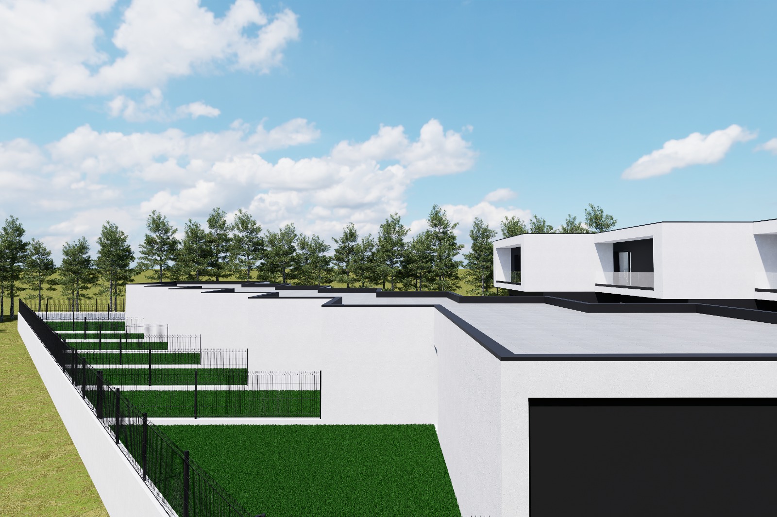 Fração A: Junto à garagem, atrás, na lateral e na frente.(individual) + comum à drta do edifício.